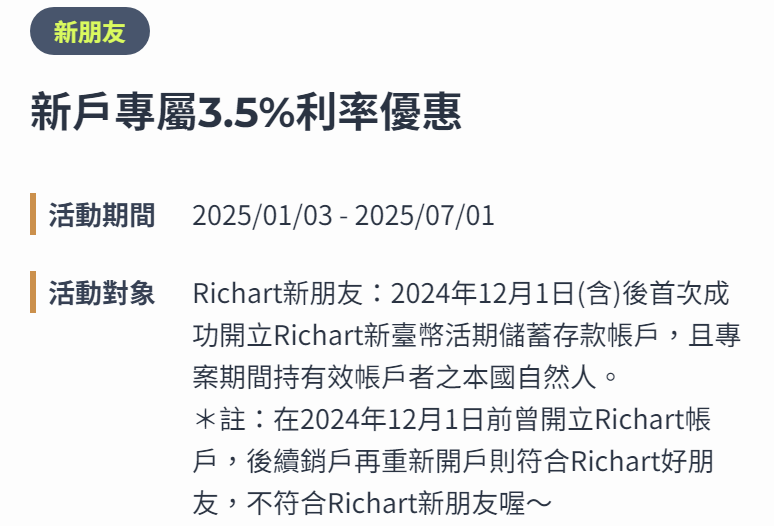 📌 Richart帳戶 最高3.5% 可用推薦連結再拿200